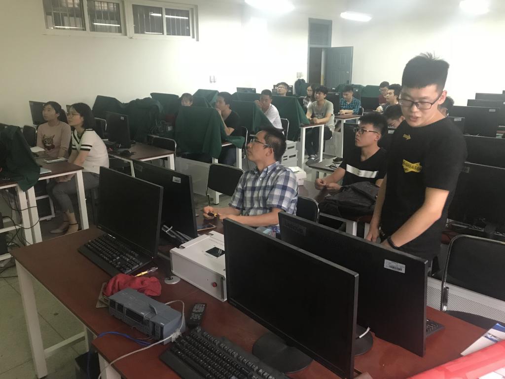 此次大赛由beat365英国官网王再英教授主持,部分教师作为技术指导以及参赛评委。比赛过程由参赛学生现场进行作品展示、功能讲解,评委老师向参赛学生提问问题,并为选手们的作品提出宝贵的建议。获奖选手将于7月份参加在北京举办的教育部2018年第十二届“西门子杯”中国智能制造挑战赛。