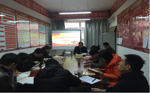11月29日,beat365英国官网党委在临潼校区骊山校园召开会议,集中学习党的十九大报告和新修订《党章》。学院党委委员、领导班子成员、系中心主任、全体党支部书记参加会议。会议由院党委书记杨勇主持。