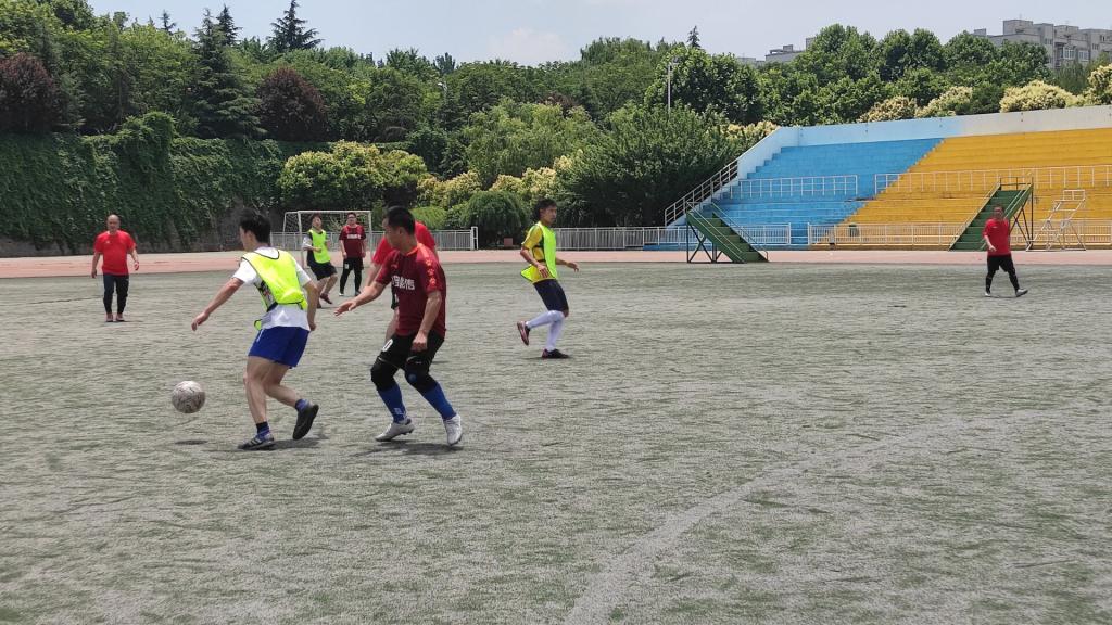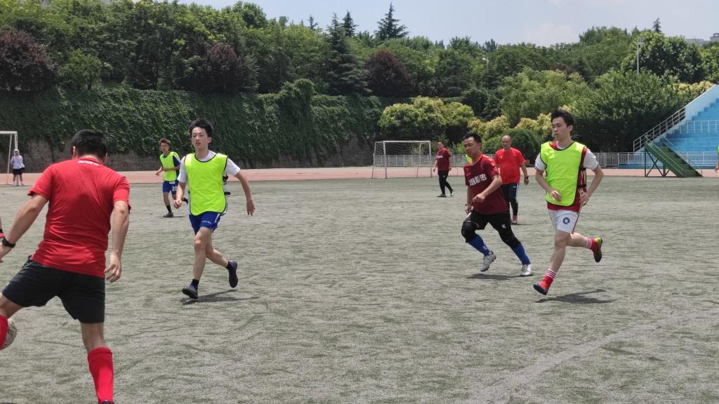 骊山的风轻轻吹,吹到绿茵场上。足球场上,一群少年挥汗如雨,球在他们的脚下灵活地变换着方向;老师们也来加入这充满激情的比赛。他们换上球服,虽然岁月在脸上刻下了痕迹,却难掩他们身上活力的光芒。老师同学一起肆意奔跑,共同留下难忘的回忆。纵使骄阳似火,依旧乐在其中。