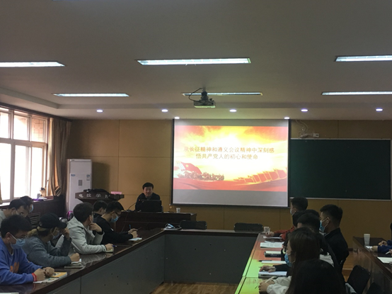 此次党课的主题是“从长征精神和遵义会议精神中深刻感悟共产党人的初心和使命”,王辉强带领大家重温了中国共产党在长征时期的艰辛奋斗历程,并阐述了遵义会议在中国共产党发展过程中的重要意义。勉励大家努力学好科学知识,以史为鉴,将西科人“祖国利益高于一切”的校训铭记于心,为国家的强大贡献自身的力量。