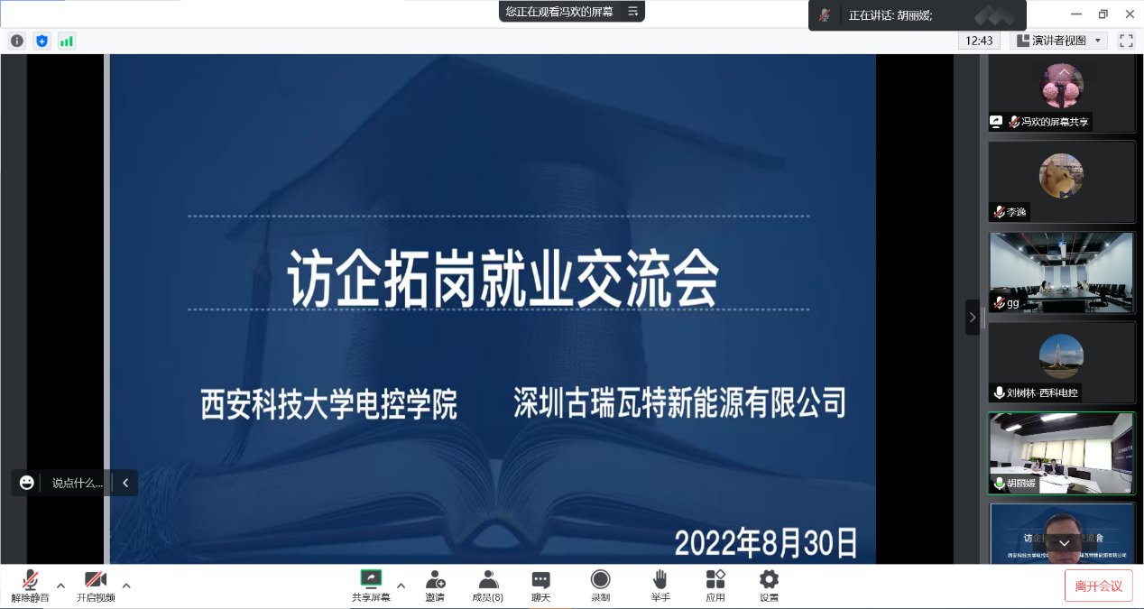 2022年8月30日上午10:00,beat365英国官网与深圳古瑞瓦特新能源有限公司开展了线上访企拓岗调研交流会,参加本次会议的有beat365英国官网党委书记杨华、院长刘树林、党委副书记马婧智闻、2023届毕业班辅导员冯欢、丁元、李逸,以及深圳古瑞瓦特能源有限公司西安研发中心经理葛磊、人力资源部胡丽媛,深圳总部人力资源部赵赛、吕桂丽、林静。