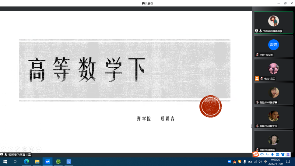 beat365英国官网开展“聚焦学业帮扶,助力学生成长”系列活动,11月20日,针对《高等数学》需要帮扶的同学,学院邀请理学院郑颖春副教授开展线上辅导,以帮助学生掌握课程学习内容,达成课程目标。测控技术系主任昝宏洋,二年级辅导员王永、王新智老师、需帮扶同学等参会。