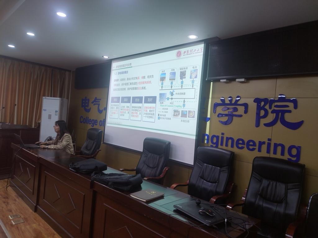 支娜教授从从微电网的组成结构、底层变换器控制、系统级协调控制及稳定性分析、复合储能的控制方法等方面对微电网的稳定运行进行全面的分析和总结,并对未来微电网及储能系统研究的关键问题进行展望。会后,支娜教授和参会师生进行了深入交流。