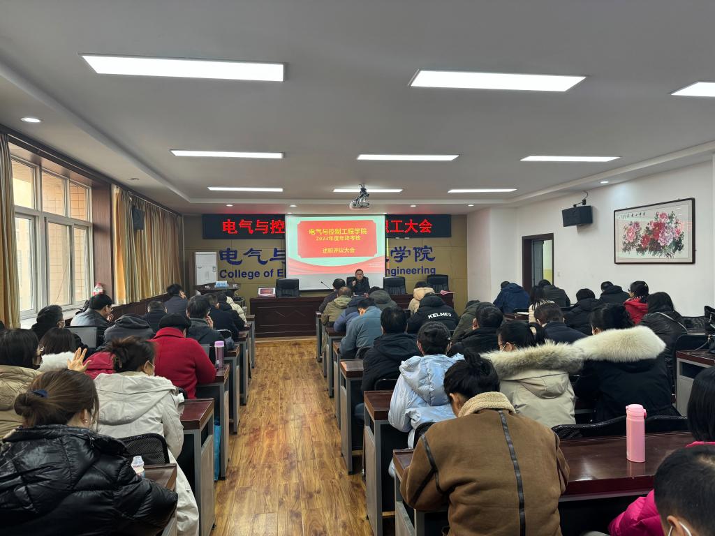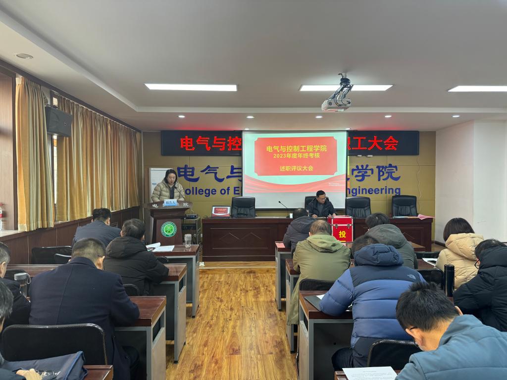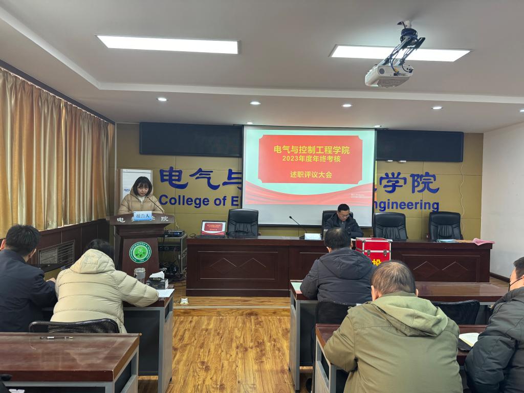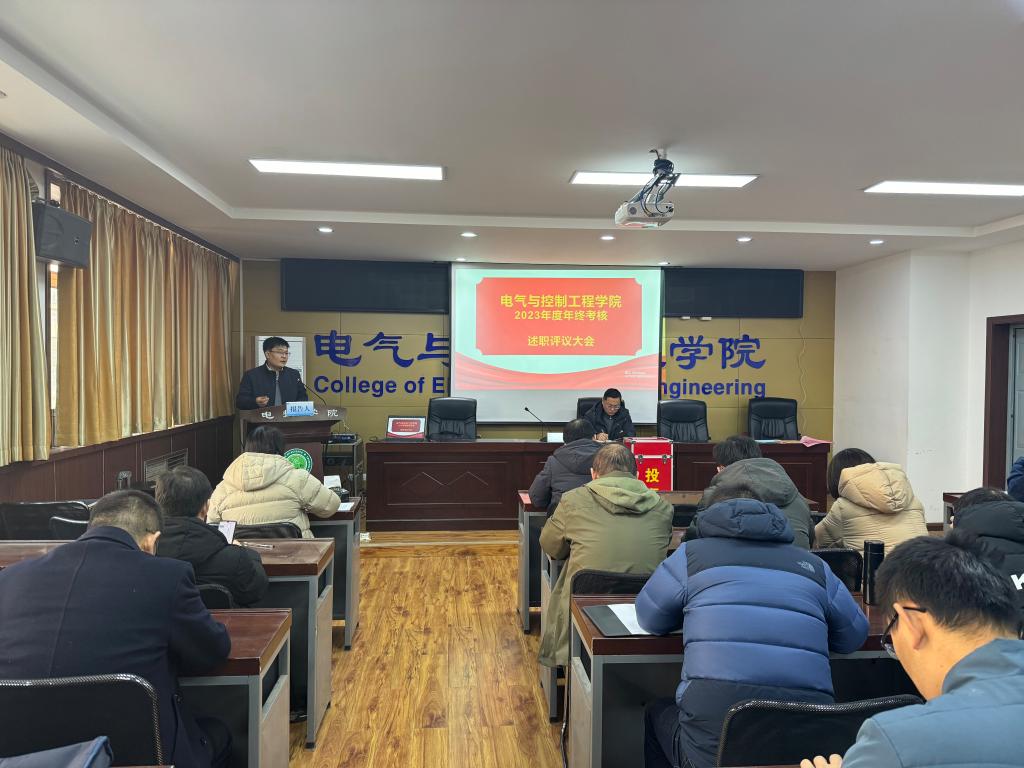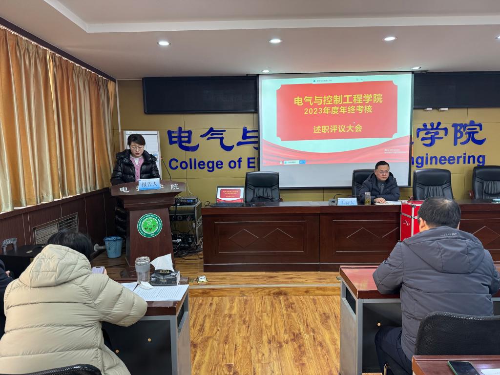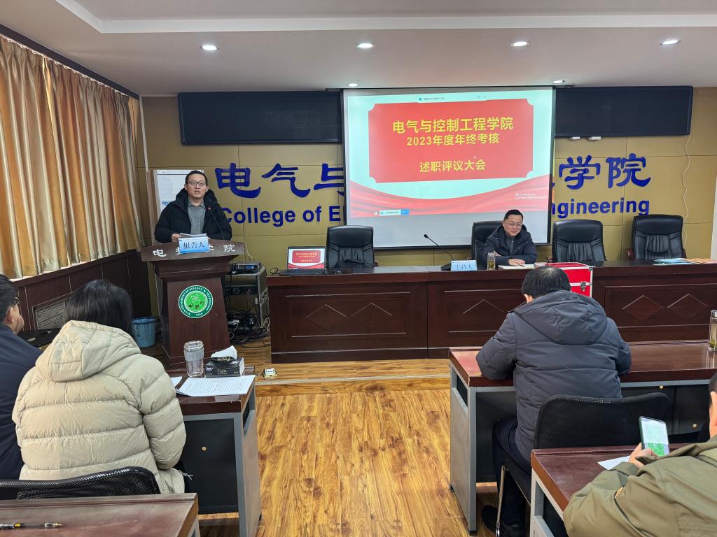 12月27日上午,beat365英国官网在骊山校园17号教学楼318会议室召开2023年度年终考核述职评议大会,全体教职工和学生代表参加了会议,会议由党委书记杨华主持。