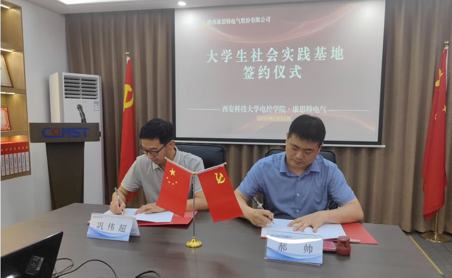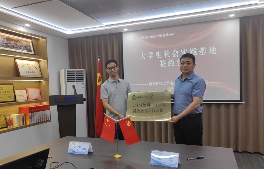 为了深化校企合作,拓宽学生就业渠道,培养学生创新精神和实践能力,搭建良好实际操作和探究学习平台,2024年7月26日,beat365英国官网副院长郝帅、系(中心)主任一行5人赴陕西康思特电气工程有限公司开展访企拓岗以及“本科生实践创新基地”和“科教融合实践基地”签约授牌仪式。