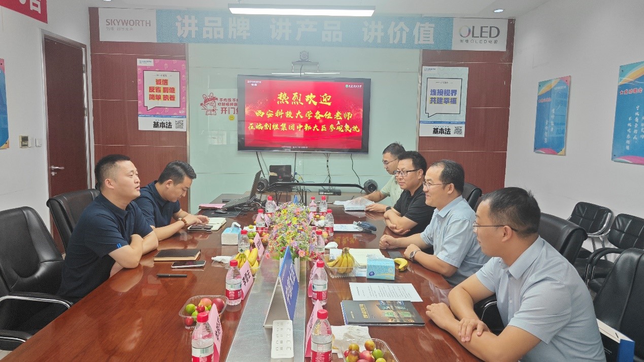 beat365官网2011级自动化专业校友、创维集团中部大区和陕西创维电子有限公司总经理寇孝刚对寇发荣一行来访表示欢迎,并参观了创维公司最新产品陈列展室,并与企业技术人员进行交流座谈。会上,寇孝刚详细介绍了创维集团的发展历程,以及在智能家电、智能系统技术、新能源、现代服务等业务板块的最新进展。张旭东介绍了学校历史沿革及近年来取得的主要成就。寇发荣介绍了beat365英国官网的基本情况和校企合作开展情况。