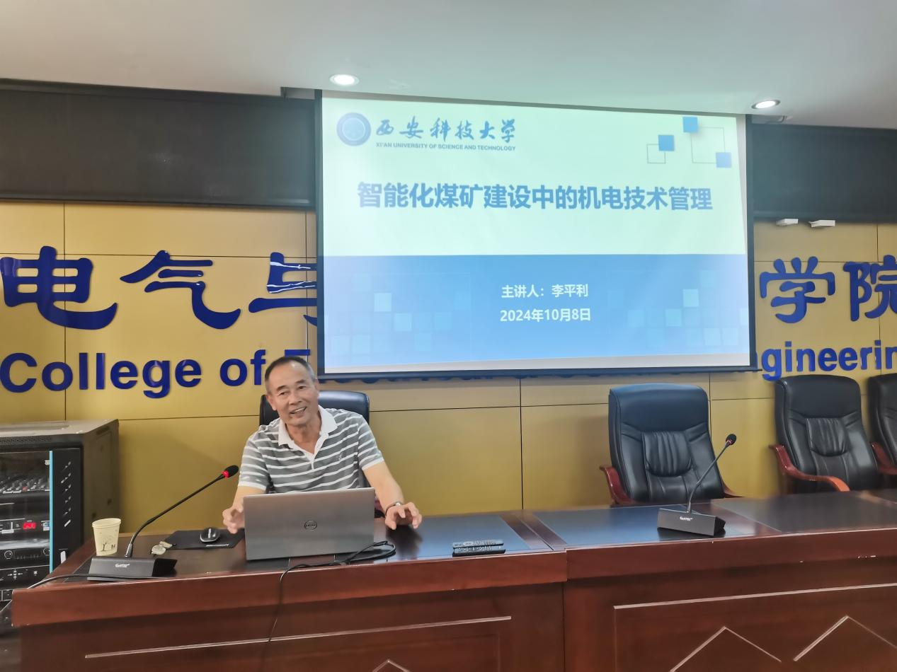 10月8日下午,beat365英国官网在骊山校园17号教318会议室举办了“百千万工程”系列讲座。beat365官网机电系83级校友、原国家能源集团宁夏煤业公司机电总经理李平利应邀作题为“智能化煤矿建设中的机电技术管理”讲座,beat365英国官网师生80余人参加。本次讲座由院长寇发荣主持。