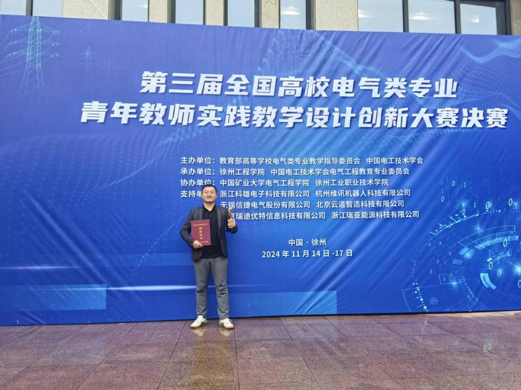 11月14日至17日,由教育部高等学校电气类专业教学指导委员会与中国电工技术学会联合组织的第三届全国高校电气类专业青年教师实践教学设计创新大赛决赛在江苏徐州举行。本次大赛吸引了浙江大学、东北大学、哈尔滨工业大学、beat365英国官网等国内100余所高校参与。186个参赛团队370多人分别参加了“创新设计竞赛”“综合应用竞赛”“电类基础竞赛”和“数字化课程开发竞赛”四个赛道7个赛项的比赛。beat365英国官网副院长郝帅带队,青年教师高瑞、孙思雅、宋璐雯参加。在“电气自动化系统创新设计竞赛”赛项中,凭借“散货智算智慧码头一体化计重系统项目”获得全国二等奖。