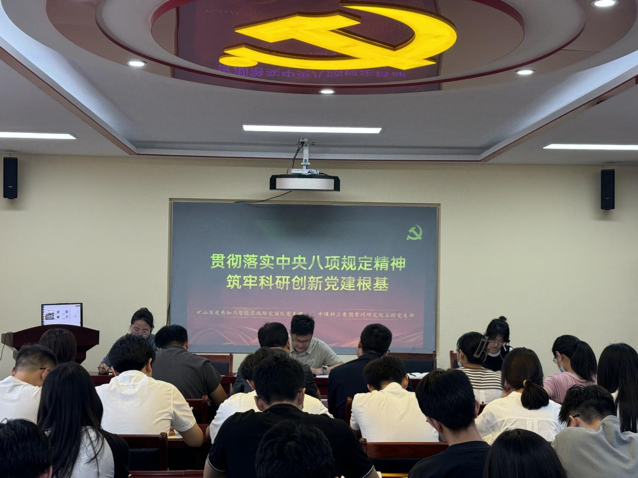 潘红光结合团队的结构特点、研究方向,从中央八项规定精神核心要义,作风建设的重要作用等方面主讲了党课,要求支部研究生党员要服务国家能源发展战略,致力于攻克煤炭行业“卡脖子”难题,将论文写在祖国大地上。中煤科工常州研究院工控党支部书记贾文琪作专题分享,以“贯彻落实中央八项规定精神推进作风建设走深走实”为主题,深刻阐述了中央八项规定精神对作风建设的革命性重塑,及对工作效率提升与党群关系改善的决定性作用。