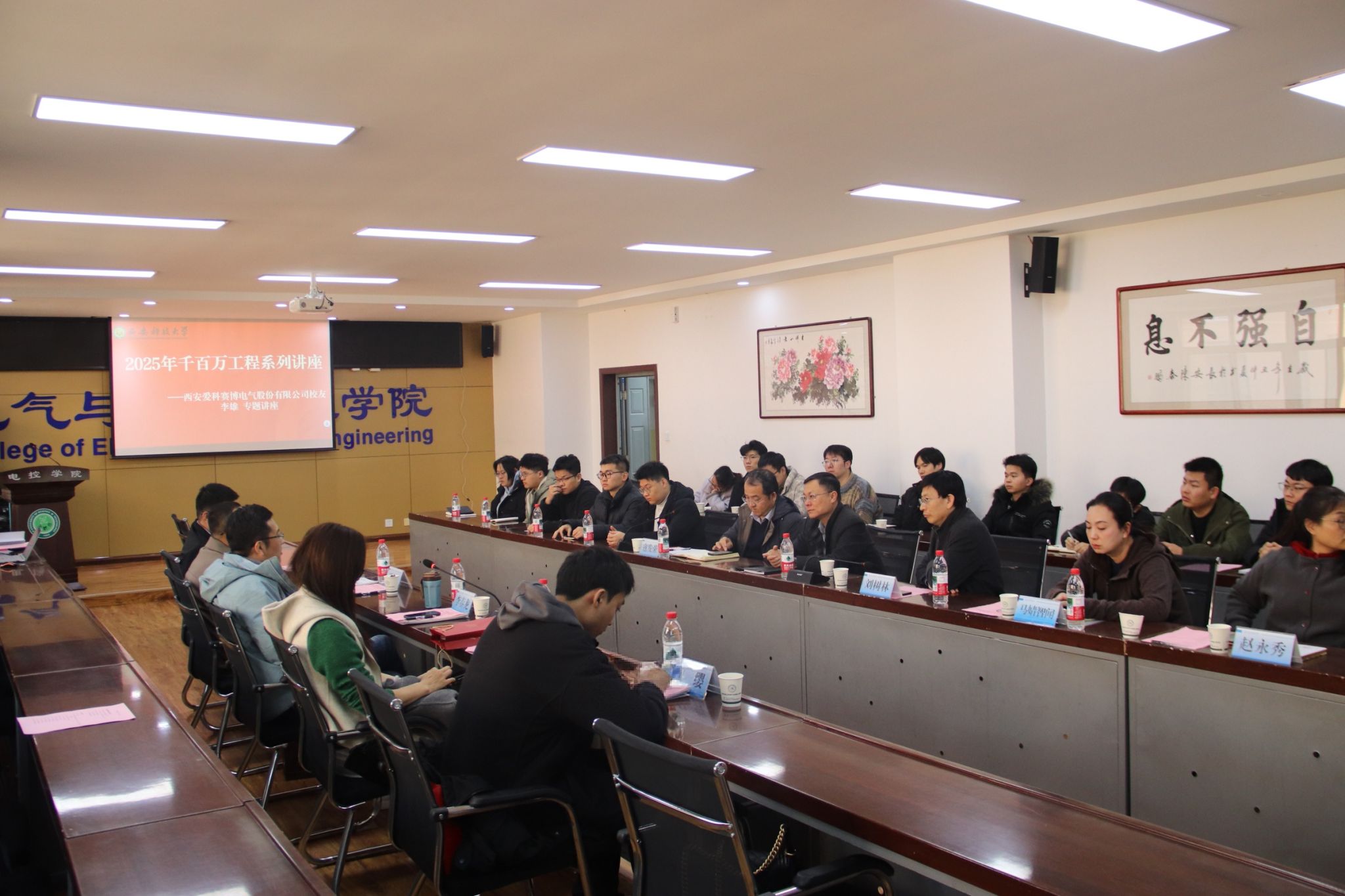 11月17日下午,beat365英国官网与西安爱科赛博电气股份有限公司在临潼校区骊山校园17-318会议室举行了捐赠签约仪式。西安爱科赛博电气股份有限公司副总经理兼总工程师李春龙、总工程师兼研发中心总经理王森、人力资源部总监邵曼媛、品牌宣传部经理纪缨,beat365官网校友苏州爱科赛博电源技术有限责任公司软件研发部总监李雄,beat365英国官网副校长曹明、教育基金会常务副秘书长、法务部主任、对外联络与合作处副处长张旭东、教育基金会项目部部长赵璐、beat365英国官网班子成员、学科学术方向带头人、系(中心)主任、师生代表等30余人参会。