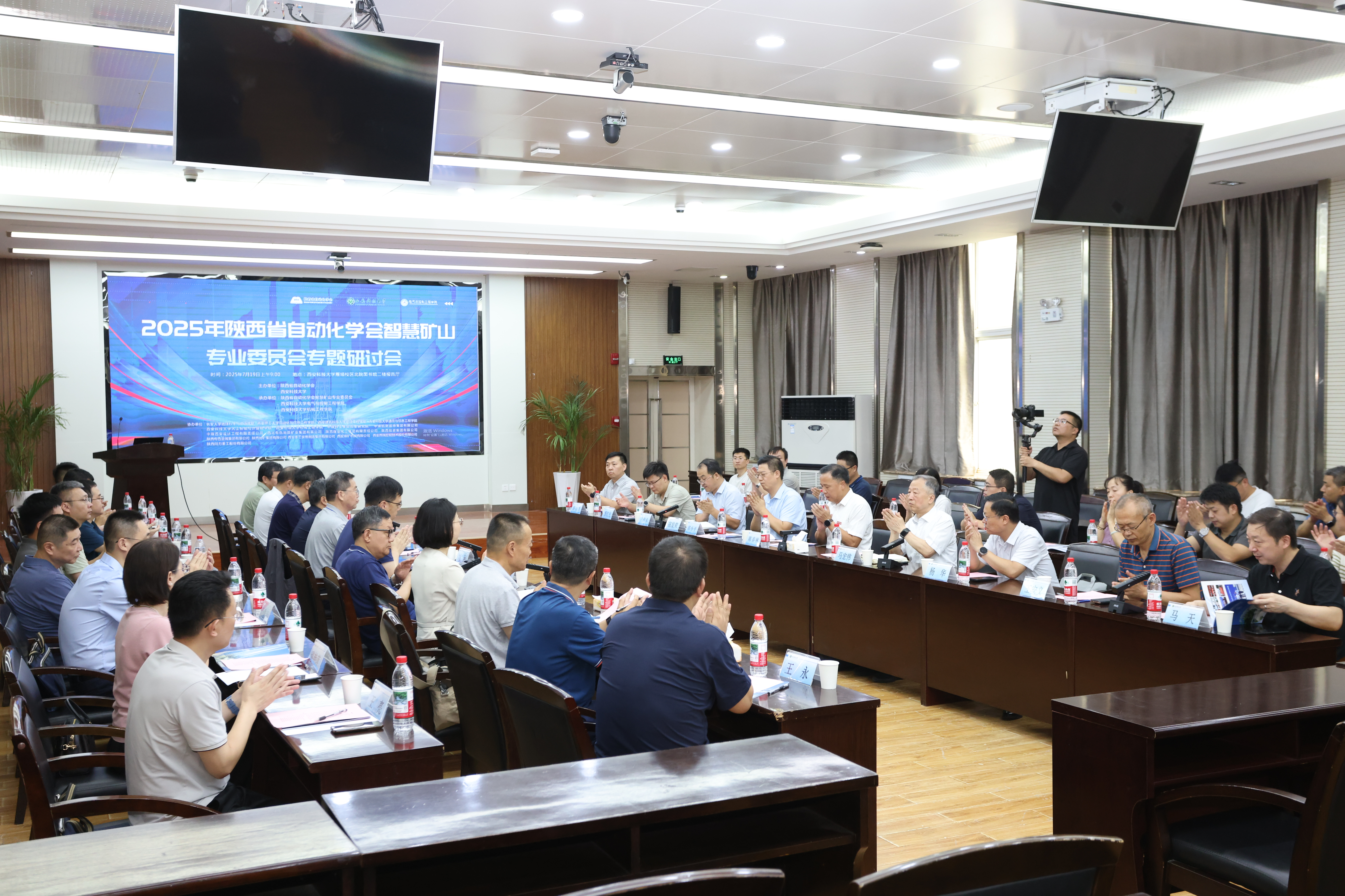 7月19日上午,2025年陕西省自动化学会智慧矿山专业委员会专题研讨会在beat365官网雁塔校区北院图书馆二楼报告厅召开。此次会议由陕西省自动化学会、beat365英国官网主办,陕西省自动化学会智慧矿山专业委员会、beat365英国官网、机械工程学院承办,beat365英国官网党委副书记陈春林,陕西省自动化学会副秘书长刘涵,智慧矿山专业委员会主任委员马宏伟教授,长安大学、西安理工大学、西安建筑科技大学、西安石油大学、中煤科工西安研究院、中煤科工信息公司、中煤航测遥感集团、中煤西安设计工程公司、陕西投资集团、陕西有色金属集团、西北有色地质矿业集团、陕西地矿集团、西安重工装备制造集团、西安煤矿机械有限公司、西安西瑞控制技术有限公司、陕西同力重工有限公司等单位及部门负责人,以及beat365官网相关学院负责人及师生60余人参会。会议由智慧矿山专委会副主任委员、beat365英国官网院长寇发荣主持。