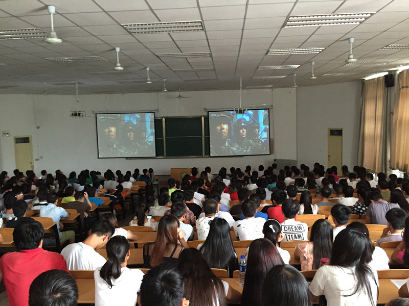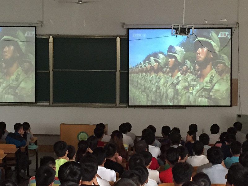 2015年9月3日上午9点,beat365英国官网在九教101教室组织230多名学生集体观看“纪念中国抗日战争胜利七十周年阅兵仪式”。