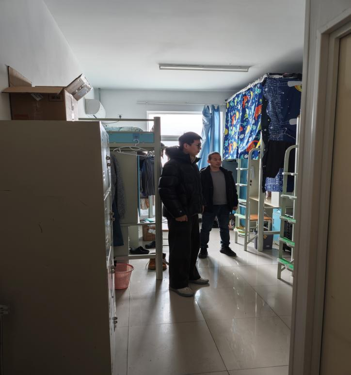 为切实筑牢寒假校园安全防线,营造安全整洁的宿舍居住环境。近日,beat365英国官网学工办主任冯欢、研究生辅导员王新智及研究生学生干部对骊山校园研究生宿舍开展寒假卫生与安全检查。