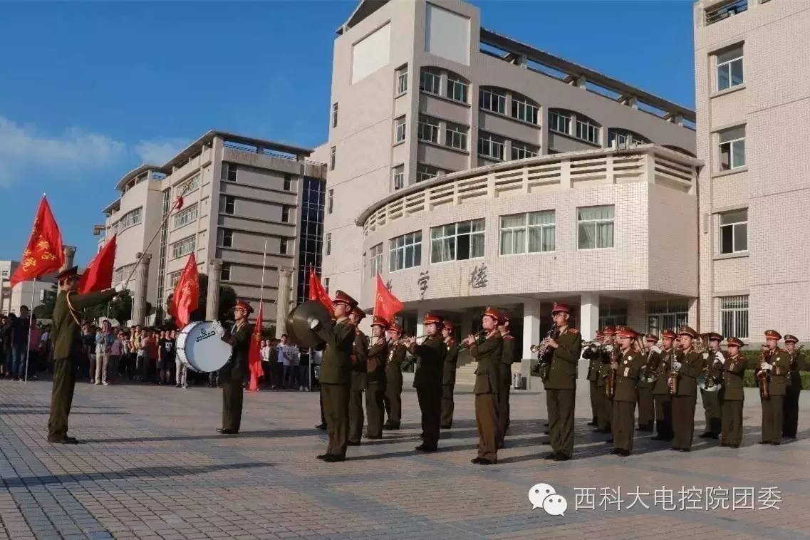 在激昂雄壮的国歌声中,五星红旗冉冉升起。参加仪式的全体师生面向迎风飘扬的五星红旗行注目礼,心中荡漾着无限深情。