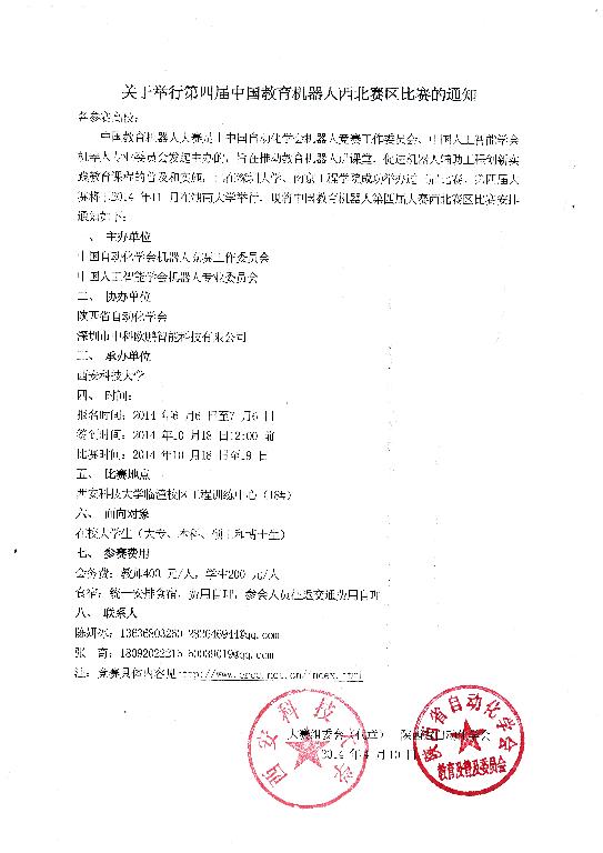 2014中国教育机器人第四届大赛西北地区比赛的通知