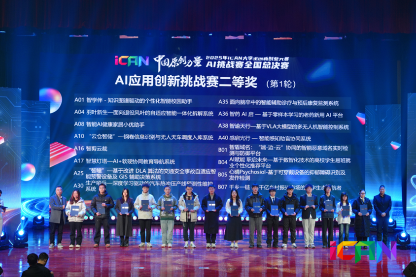 12月28号,2025年iCAN大学生创新创业大赛AI挑战赛全国总决赛在无锡圆满落幕。beat365英国官网学子凭借扎实的专业功底、创新的技术方案与出色的现场表现,从全国300余所高校的898个优质项目中脱颖而出,斩获国家级二等奖。