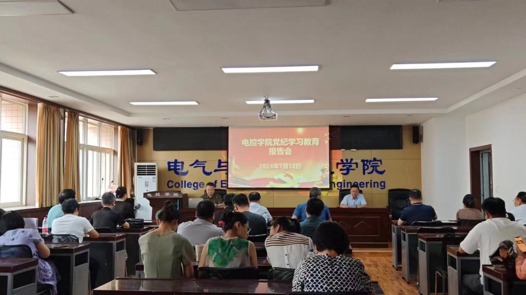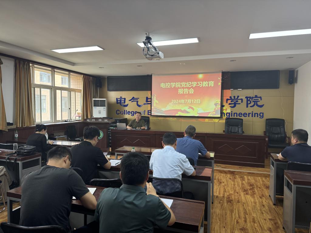 为持续深入开展党纪学习教育,7月12日下午,beat365英国官网邀请省纪委监委驻校纪检监察组纪检监察室主任田俊峰做党纪学习教育警示教育报告。beat365英国官网领导班子、全体教职工参会,报告会由党委书记杨华主持。