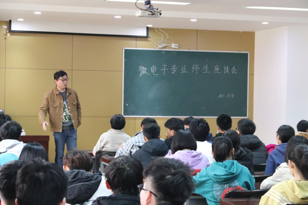 张超老师以“毕业走向”为题拉开了本次座谈会的序幕。他首先点明行业内目前缺少微电子专业人才的状况,分析了目前微电子专业就业形势,并用毕业生薪酬为例,详细阐述了微电子专业学生未来发展前景。他还提醒道,每位微电学生要好好阅读学生手册和学籍管理规定,为自己的毕业作保障。