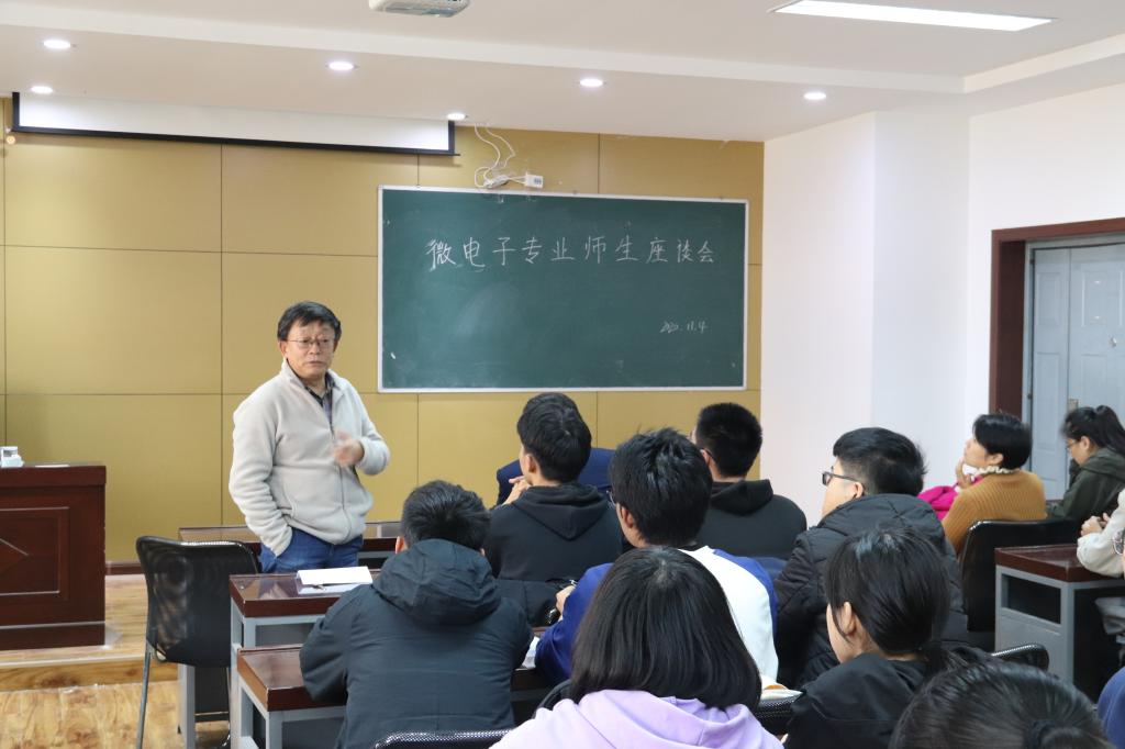 2020年11月4日14:00,微电子专业师生座谈会于17教318教室举行,微电子专业系主任张超老师,童军老师,杨波老师,张岩老师,李妤晨老师出席了本次座谈会。