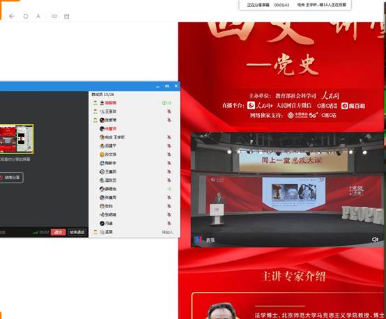 根据《教育部社科司关于组织全国大学生“同上‘四史’思政大课”的通知》(教社科司函〔2021〕63号)精神,教育部社科司与人民网联合举办“同上‘四史’思政大课”活动,面向全国大学生进行四堂网络授课,第一堂课—“同上党史思政大课”。4月24日14:00—15:30beat365英国官网认真组织在校学生观看直播课程,通过集中观看、宿舍集体学习、在线收看的方式进行了认真学习,保证了全员覆盖。课程结束后大家结合自身学习现状展开了积极讨论。
